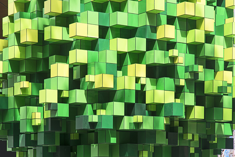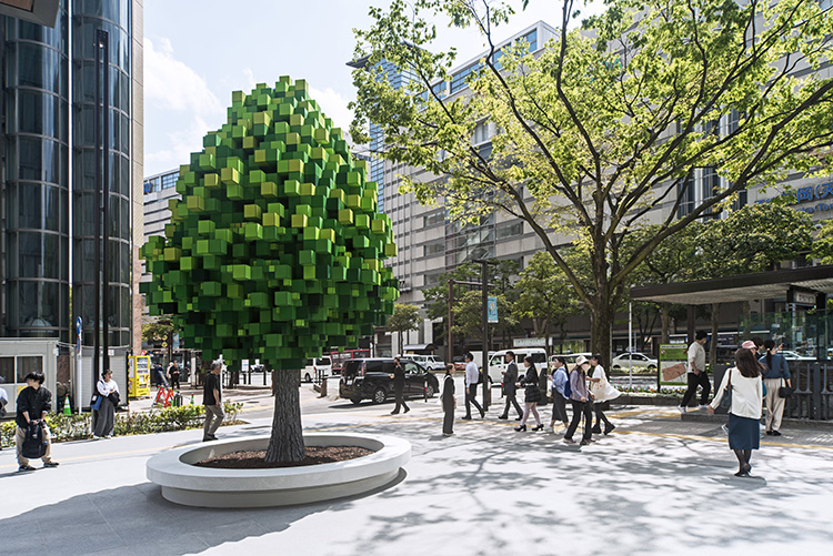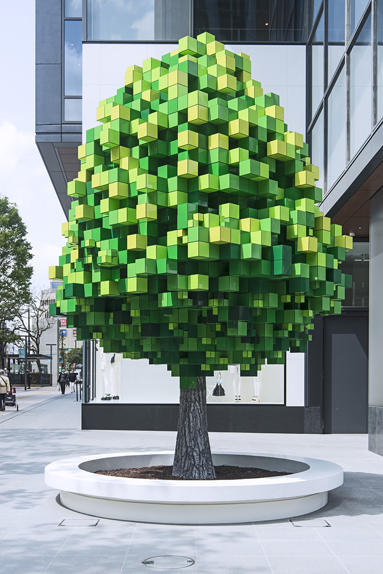 福岡市中央区天神地区にできた「ワン・フクオカ・ビルディング」の敷地内にはさまざまなパブリック・アートが設置されていますが、そのひとつ、アルゼンチン出身の現代アーティスト、レアンドロ・エルリッヒ氏の作品であるPixel Treeは、その不思議な存在感で街のランドマークとなっています。足元にはテラゾのベンチも造られ、いつも多くの人々が集まります。山本想太郎設計アトリエは、このアートの実施設計・監理、行政申請を担当しました。